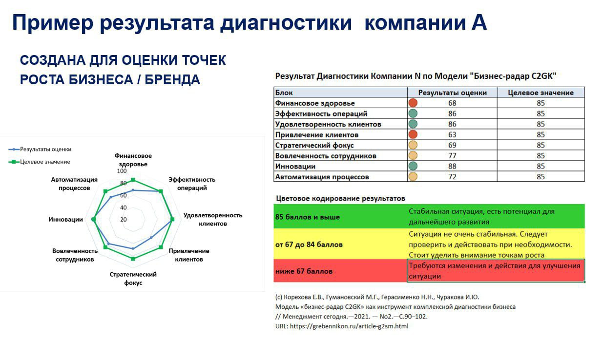 Корехова Е.В., Гумановский М.Г., Герасименко Н.Н., Чуракова И.Ю. Модель «бизнес-радар C2GK» как инструмент комплексной диагностики бизнеса // Менеджмент